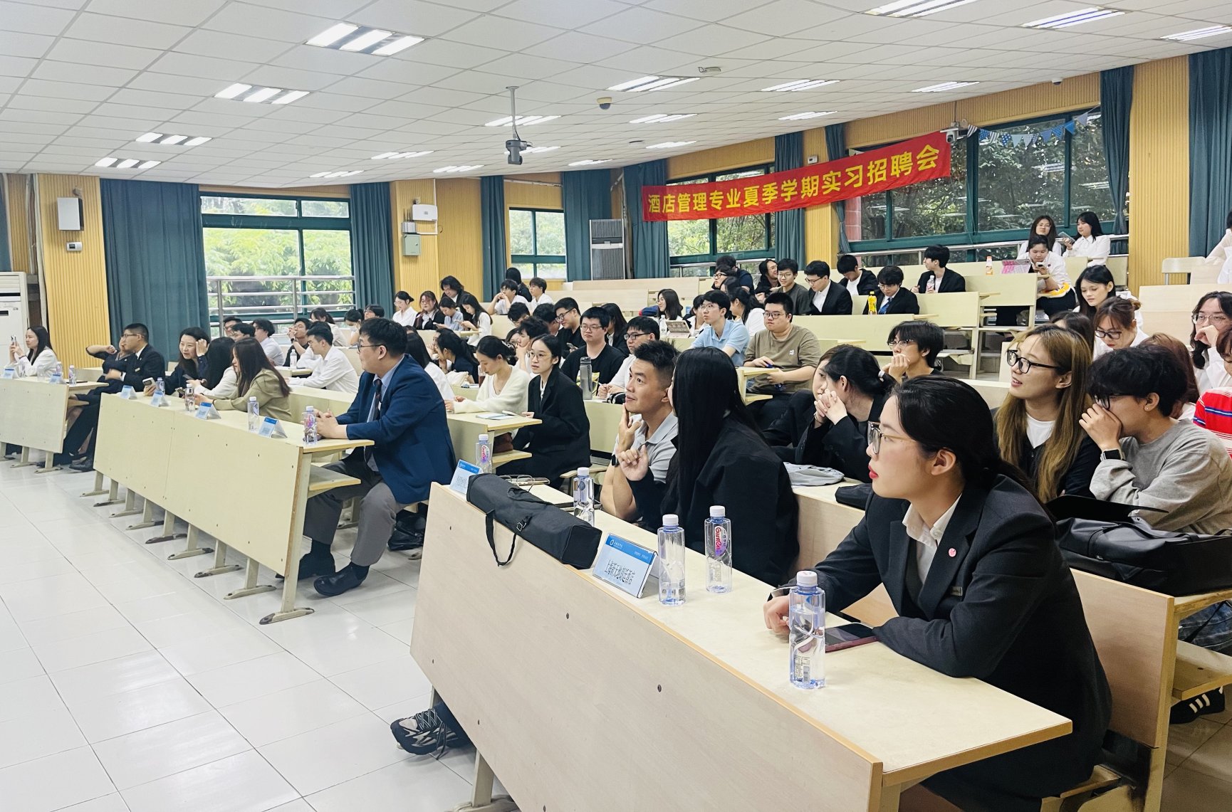 上下午两场招聘会现场气氛热烈,参会企业涵盖国际酒店集团、本土匠心品牌、会展服务公司等泛酒店业领域,为2022级即将开展专业实习的学生提供了前台运营、宾客服务、销售运营、数字营销等多元化岗位。除应届实习生外,不少大二学生提前了解职业规划,大四毕业生也积极寻求就业机会。学生们手持简历,与企业招聘负责人面对面交流,展现出扎实的专业素养与职业潜力。