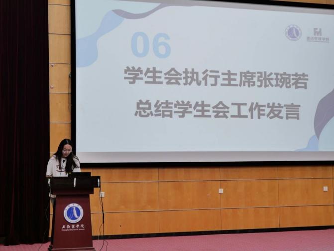 学生会执行主席张琬若对学生会部门进行总结发言,张琬若在发言中表示:“酒店管理学院学生会始终秉持‘服务同学、锻炼自我’的宗旨,在传承中创新,在挑战中突破。”她指出,要提升成员综合素质与服务能力,进一步发挥学生会的桥梁纽带作用,助力营造积极向上的校园氛围。