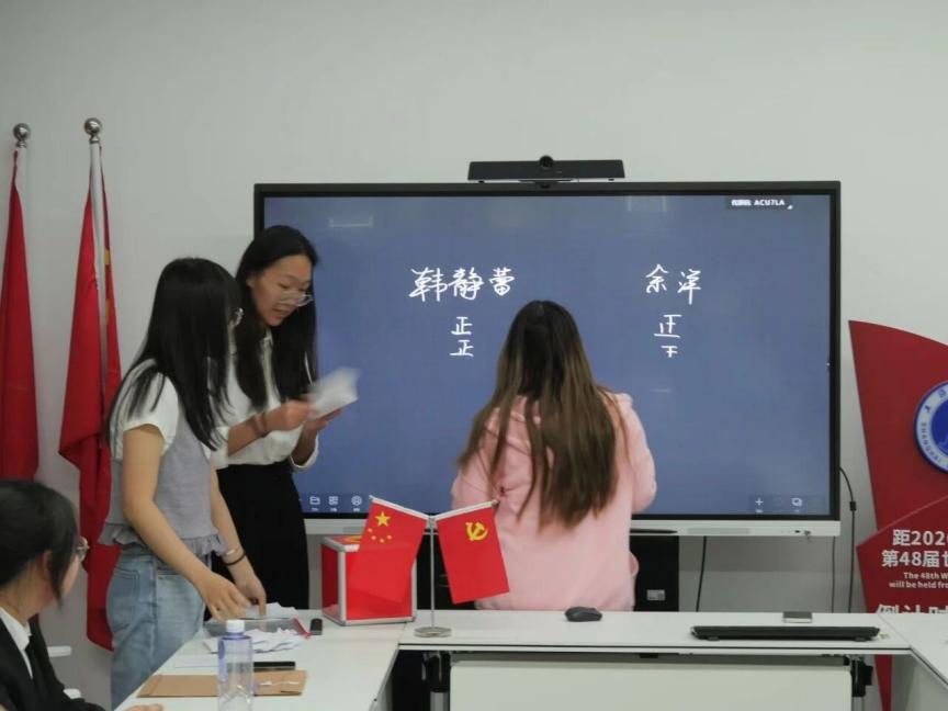 本次会议主要议程为2025-2026学年酒店管理学院团委学生兼职副书记竞选。参与本次竞选汇报的候选人以缜密的逻辑和清晰的思路,明确阐述了自己对竞选职务的理解,描绘了就职后的职责蓝图,并表达了为青年学生服务的坚定决心以及对团学工作的热忱和憧憬。各位代表在深思熟虑后投出了自己宝贵的一票。经过唱票后,最终选举出食品质量与安全231本科班的韩静蕾为2025-2026学年上海商学院酒店管理学院团委学生兼职副书记。