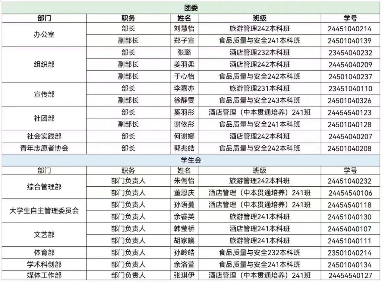 酒店管理学院根据各部门候选人的面试答辩表现和笔试成绩,经换届小组研究决定,推选以下同学为酒店管理学院第十一届团委学生会各部门干部,公示如下: