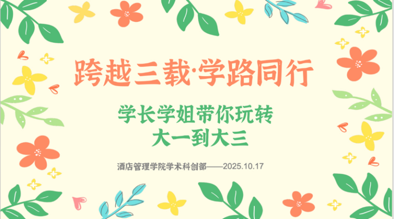 为帮助大一新生快速适应大学生活、明确学业与职业发展方向,酒店管理学院围绕人才培养目标,精心策划了一系列迎新活动。开学季学院特别邀请6位23级优秀学长学姐,结合自身专业和成长经历,多维度为新生送上干货满满的大学成长指南。