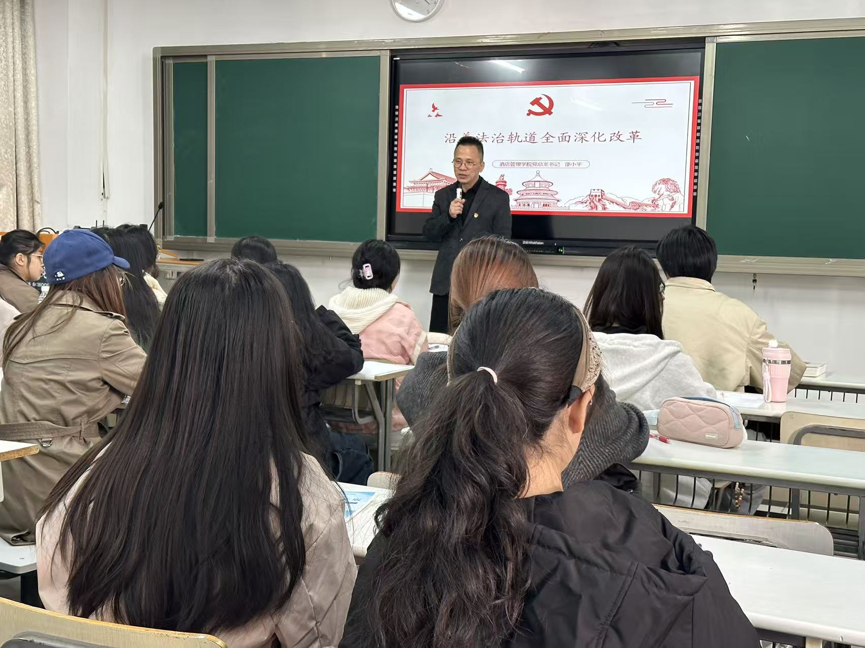 酒店管理学院党总支书记邵小平的《沿着法治轨道全面深化改革》课程,清晰梳理了改革与法治的辩证关系,通过案例分析,使学员们认识到法治对于保障社会公平正义、护航改革行稳致远的极端重要性,强化了大家的法治思维和规矩意识。