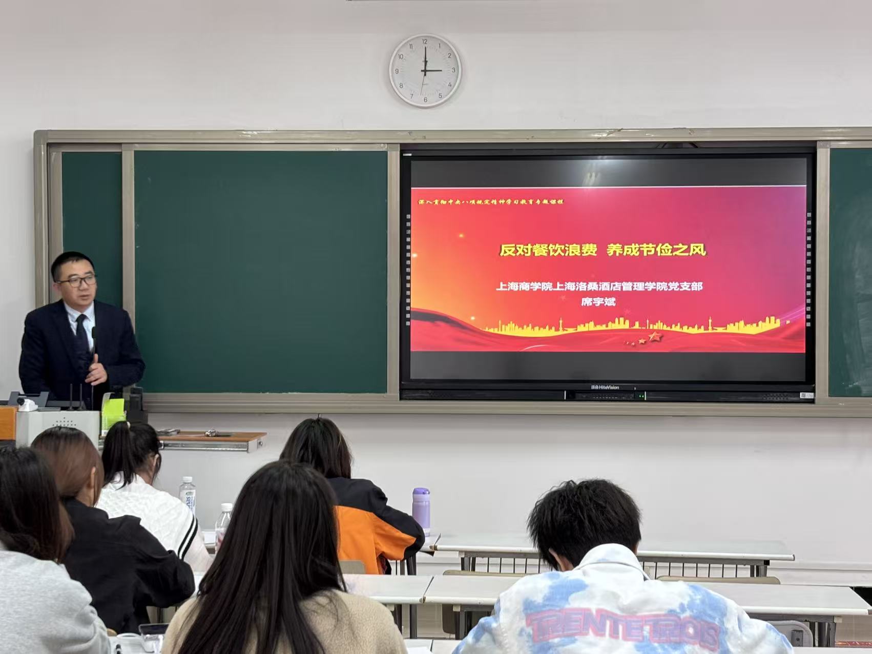 上海洛桑酒店管理学院党支部副书记席宇斌则立足学院专业特色,讲授了《反对餐饮浪费 养成节俭之风》,结合餐饮行业现状与数据,生动阐述了粮食安全的国家战略意义,引导学员们从自身做起,成为勤俭节约风尚的倡导者和践行者。