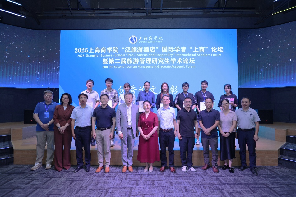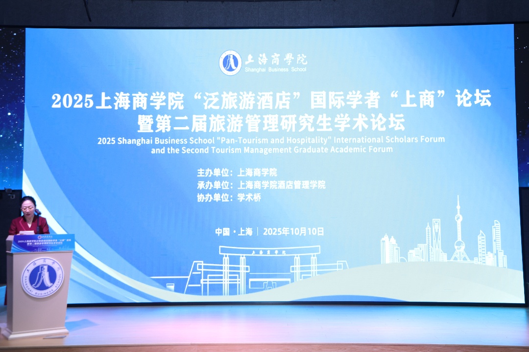 2025年10月10日,上海商学院第二届旅游管理研究生学术论坛于中山西路校区成功举办。本届论坛汇聚众多行业专家与学者,特邀上海市旅游行业协会常务副会长赵锋、上海市东湖(集团)有限公司副总经理曹伟、上海大富贵酒楼有限公司总经理奚伟中、九龙仓酒店管理(上海)有限公司中国区财务总监兼业务拓展总监常青等业界代表莅临指导。校党委研究生工作部部长、研究生处处长张凯旋教授,酒店管理学院院长姜红教授,副院长符全胜教授、黄和平教授,以及王松茂教授、郭安禧教授等教师代表出席论坛。此外,论坛还吸引了国内多所高校的研究生踊跃参与。