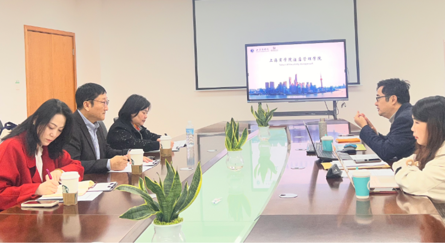 2026年3月25日上午,上海元气医疗科技集团一行到访上海商学院酒店管理学院,就康养产业人才培养、MTA实践教学基地建设及产学研合作等内容开展交流座谈。上海元气医疗科技集团教培部主任叶青山教授及企业代表三人,上海商学院酒店管理学院教学副院长符全胜教授、旅游系孙雪飞副教授、酒店系王博霖老师以及旅游管理硕士研究生(MTA)王颖参加本次交流。
