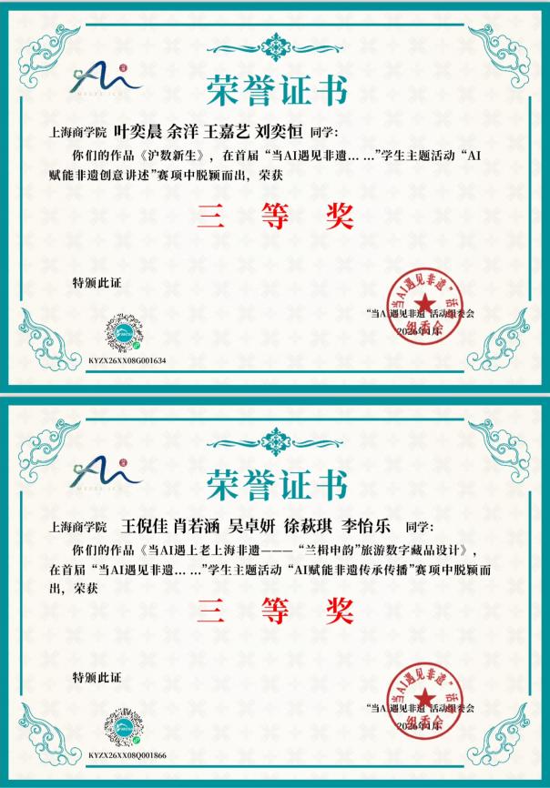 2026年1月31日,由上海市教育委员会、北京市教育委员会、江苏省教育厅、安徽省教育厅联合指导的首届“当AI遇见非遗”学生主题活动颁奖典礼在沪隆重举行,我校酒店管理学院学子凭借扎实的专业功底与创新的实践成果,斩获多项荣誉。