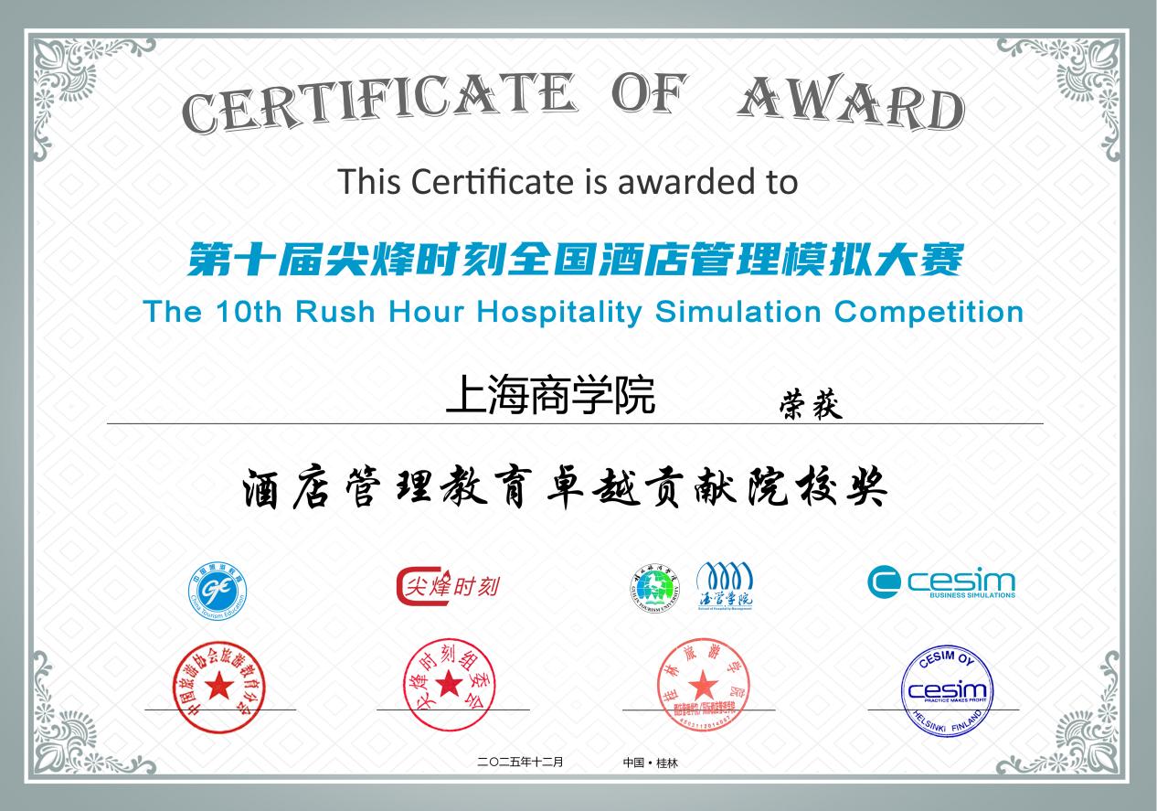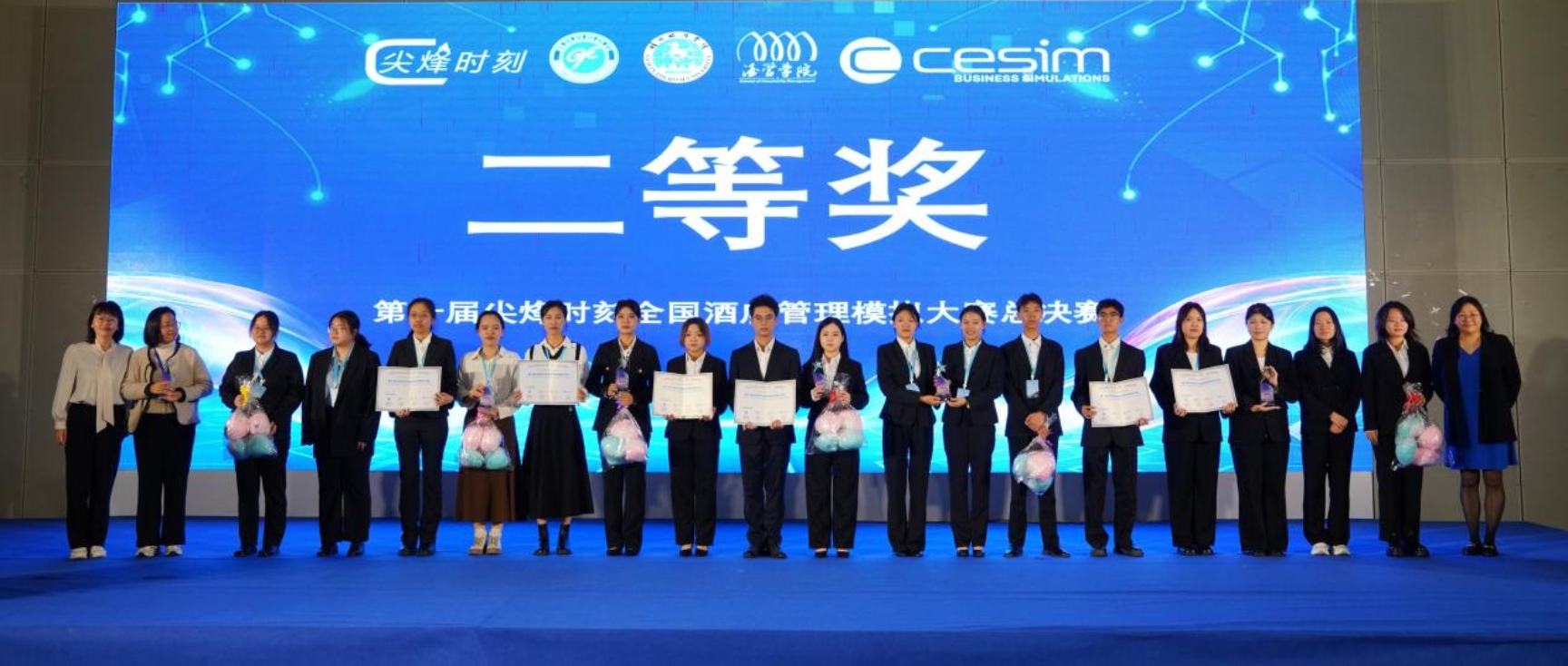 近日,第十届“尖烽时刻”全国酒店管理模拟大赛总决赛在桂林旅游学院圆满落幕。“尖烽时刻”是一项源自北欧的全球商业模拟赛事,自2008年引入中国后,已累计吸引全国近300所院校的数十万名学生参与,是酒店管理领域颇具影响力的赛事之一。本届总决赛汇聚复旦大学、中山大学、厦门大学、北师香港浸会大学、澳门城市大学等高校的50支团队同台竞技。我校荣获酒店管理教育卓越贡献院校奖,酒店管理学院团队获全国二等奖。