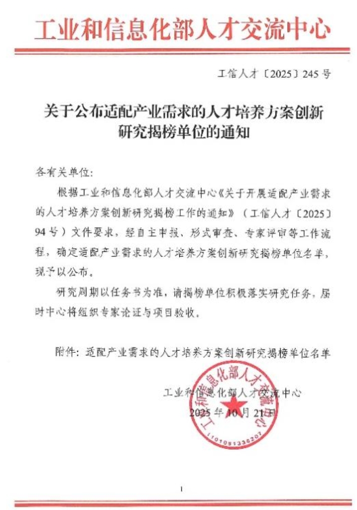 本次揭榜工作是工业和信息化部人才交流中心根据《关于开展适配产业需求的人才培养方案创新研究揭榜工作的通知》(工信人才〔2025〕94号)文件精神开展,旨在遴选一批在特定领域具有创新潜力和实践基础的高校,共同破解产业快速发展与人才培养供给之间的结构性矛盾。经过严格的自主申报、形式审查和专家评审,我院食品质量与安全专业的申报方案获得了评审专家的一致认可,最终成功入围。这一国家级项目的成功揭榜,是学院深化产教融合、优化人才培养模式所取得的积极成果,也是学校“以评促建、以建促强”将审核评估要求落到实处并初见成效的具体体现。