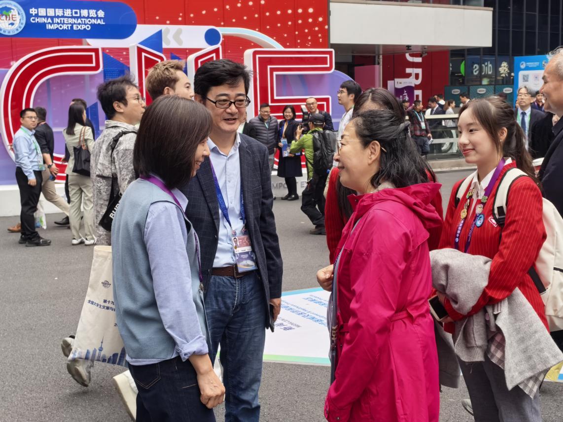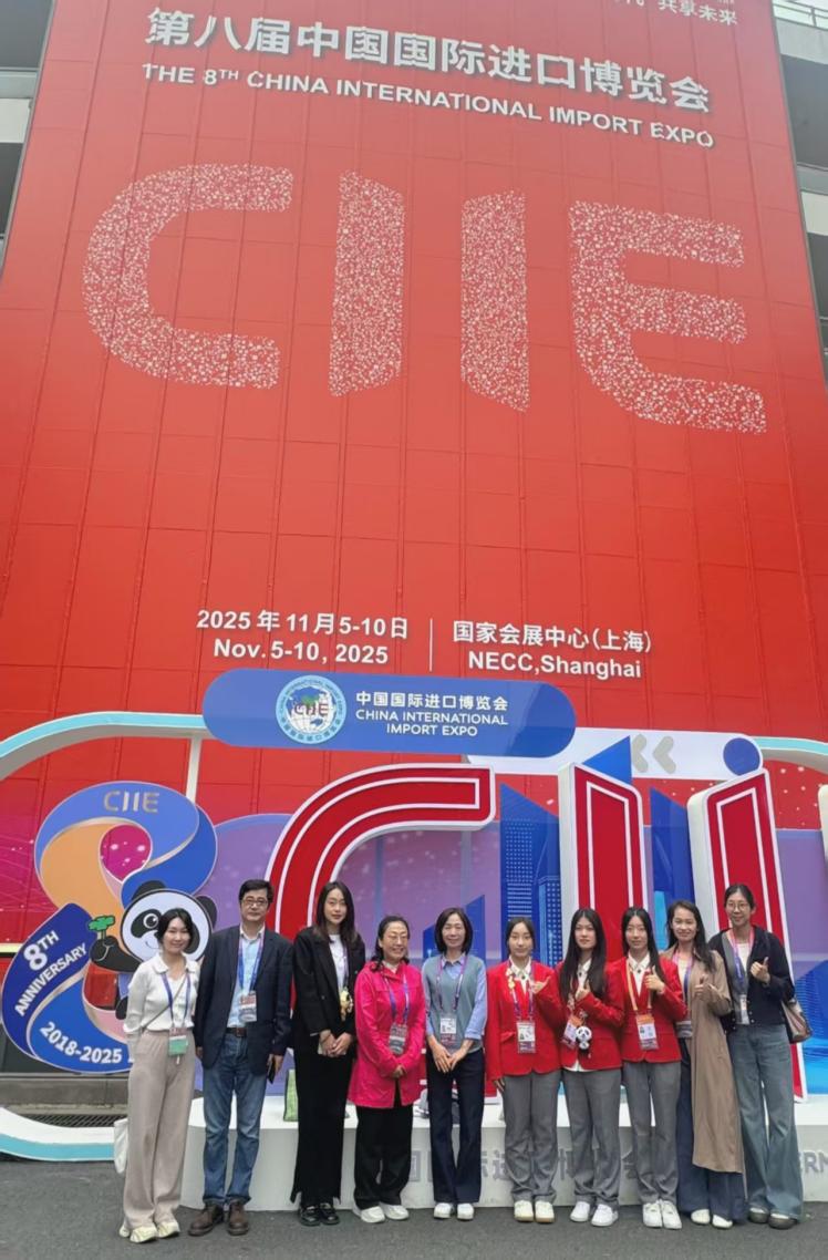在第八届中国国际进口博览会现场,张泾泾详细介绍了学院志愿者团队的参与情况与服务成效。今年学院共选派15名优秀学生加入志愿者队伍,化身“小叶子”和“联络官”,他们以高度的责任意识、专业的服务水准和饱满的青春热情,坚守在接待、引导、联络等多个岗位,展现出酒管学子扎实的综合素养与国际化服务能力。张泾泾特别提到,在这支年轻的队伍中,有8名同学已是第二次参与进博会志愿服务,成为团队中名副其实的“中坚力量”。他们不仅熟悉流程、经验丰富,更在服务中发挥着重要的示范引领作用。其中,既有统筹协调能力突出的学生负责人,也有始终冲在一线、展现先锋模范作用的党员学生,以及具备出色外语能力、在跨文化交流中表现活跃的沟通骨干。这些“资深志愿者”的持续参与,既体现了进博会平台对青年学子的强大吸引力,也反映了学院在实践育人方面的扎实成效。