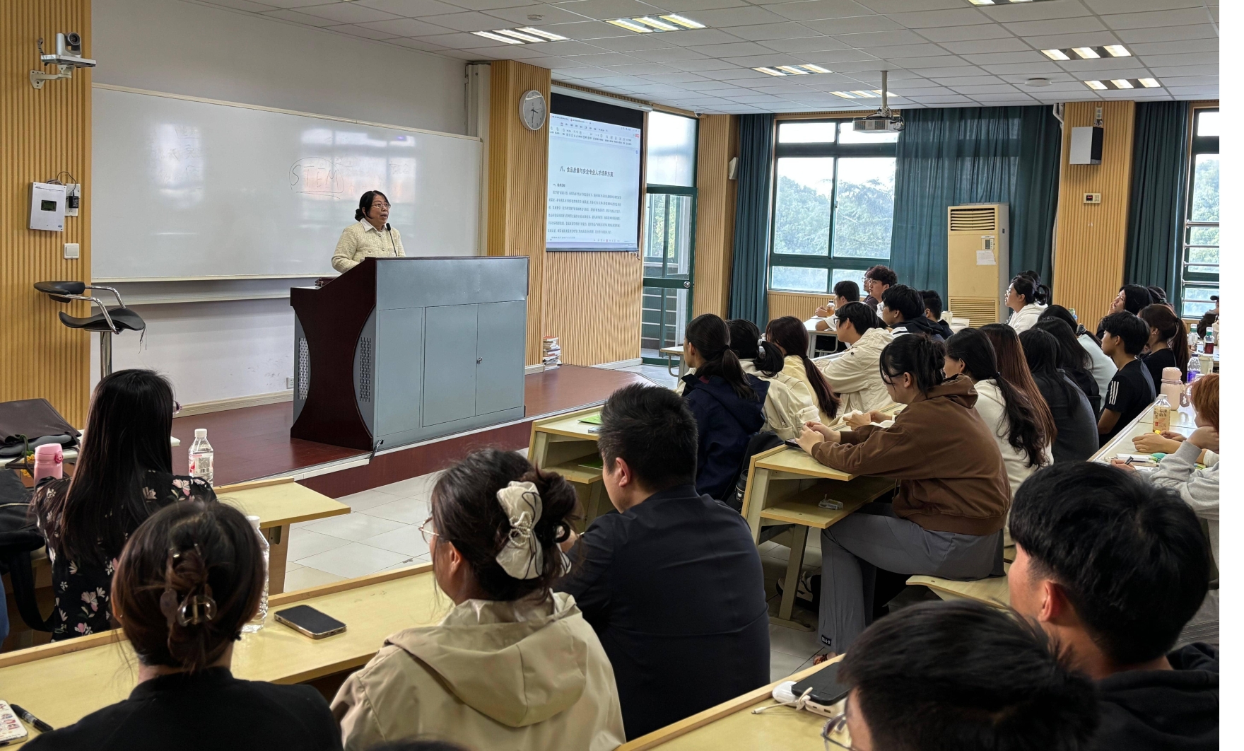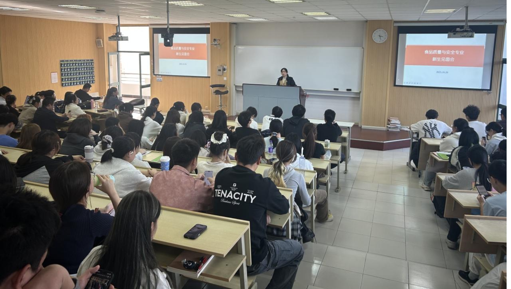 司晓晶副教授则介绍了近三年专业就业情况,展示了食品系学生在各类专业竞赛中的优异成绩,并分享了优秀学长寄语,为新生树立榜样、增强信心。她勉励同学们不仅要扎实学习,更要勇于实践,全面提升综合素质,迎接未来挑战。