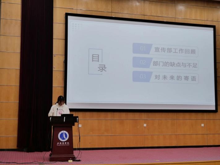 之后学生会各部门负责人依次上台汇报学年工作,围绕成果展示、问题反思及完善对策展开分享,均以详实数据与案例,展现工作亮点。各部门负责人一致表示,要继续传承优良传统,不断开拓创新,并希望新一届学生会负责人们在新征程中为学院发展注入新的活力,书写更绚烂的篇章。